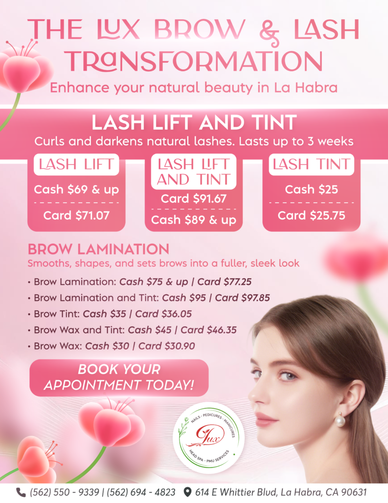 Located in La Habra, California, Lux Nails Spa was created to give guests a place to unwind, refresh, and celebrate their individuality through stunning nails and relaxing spa experiences. From the moment you step inside, you’re greeted with soft lighting, a peaceful atmosphere, and a team dedicated to delivering beauty that feels effortless and genuine. Lux Nails Spa is built on the belief that taking time for yourself should feel natural, soothing, and rewarding.